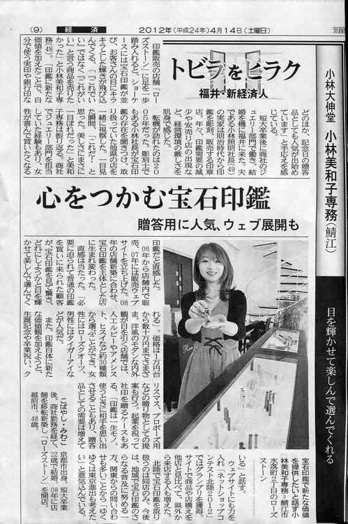 おはようございます。スタッフの藪下です。 本日の福井新聞にローズストーン美輪店長が掲載されました。 ローズストーンの誕生秘話や美輪店長の想いが伝わってくる記事となっております。 (大きく取り上げられて […]