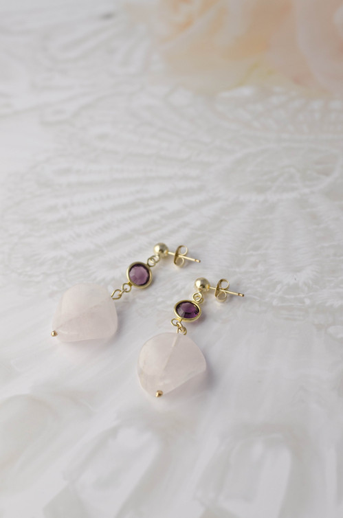 ローズクォーツの花びらイヤリングのご紹介です 花びらの先端で揺れる妖艶なパープル色のシャネルストーン 淡いピンク色の花びらがとってもチャーミング。 幸せエネル […]