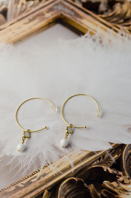 大人かわいい天然石アクセサリーロゼミワより、 表情を明るく見せてくれるホワイトの魔法 ホワイトオニキスのピアスのご紹介です。 純白のホワイトオニキスが四つ葉のクローバーとともに揺れるピア […]