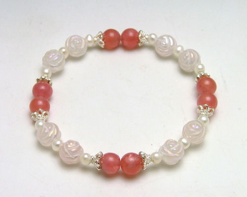 パワーストーンアクセサリー 新作商品をご紹介いたします。 <ブレスレット> 使用石:ローズオーラ、インカローズ、淡水パール 価格:12,000円 商品コード:rosemiwa147b