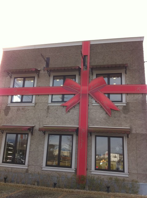 12月5日(日曜日)より、 ローズストーンにてウインターコレクション&2周年祭が始まりました☆ お店の外観もリボンに包まれ、 お店自体がプレゼント風になりました! 店内も、