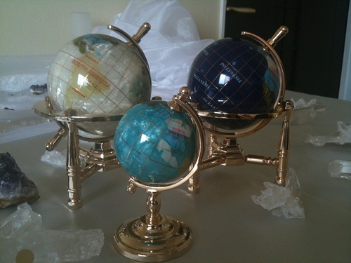 今日は、先程お客様が ご友人へのご結婚お祝いにと お買上くださいました商品をご紹介いたします。 水晶や虎目石などの天然石をちりばめた、地球儀(Jewelry Globe)です。 球の表面がキラキラ光っ […]