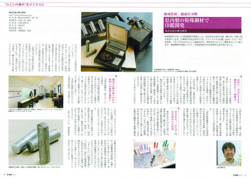 ローズストーンが、(公財)ふくい産業支援センターの情報誌 「F-ACT」に掲載されました。 地域資源を行かす-ふくいの強みをビジネスにーという特集のページで掲載されました。 クラッドメタルの印鑑[ga […]
