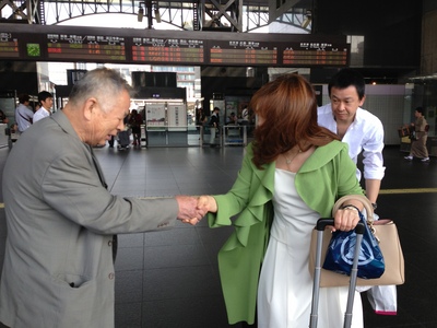 朝早いのに見送りに来てくれた父と京都駅で・・・。
