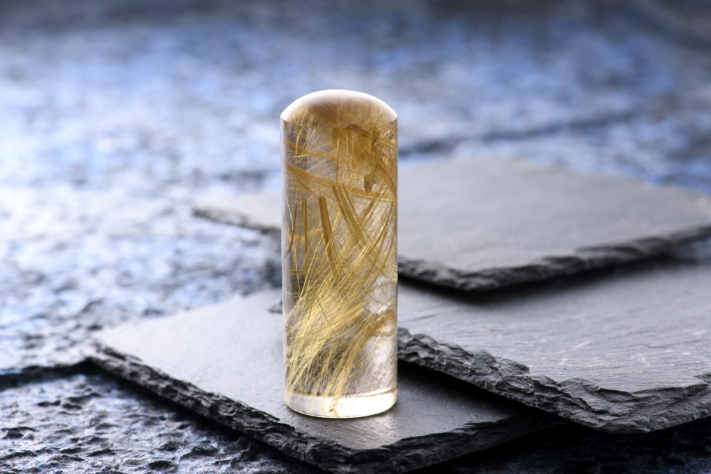 表情の異なるルチルクォーツの印鑑をいくつもご用意しています。