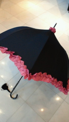 傘買ちゃいました とってもキュートな形の傘の内側は 小さなドット柄 もう、雨の日だってごきげんです♪(*^ ・^)ノ⌒☆