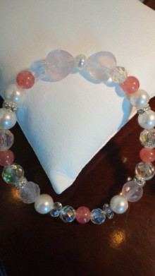 お客様よりご注文頂いてお作りしました。 ローズクォーツとインカ―ローズ・クリスタル・淡水パール を使ったブレスレット。 ハートのローズクォーツでリボンをデザインしたプリンセスブレス とってもラブリーで […]