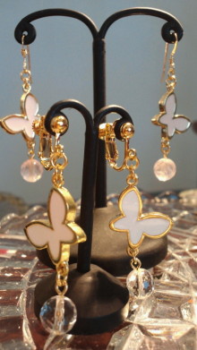 今日は雨が降りましたね。 気のせいか少し涼しくなったようです・・・。 ロゼ・ミワの新作ピアスとイヤリング・ネックレスのご紹介です。 写真では色が分かりにくいのですが 手前は白のバタフライモチーフにクリ […]