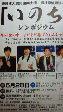 今日はずっと雨ですね・・・。 そろそろ福井県も梅雨入りしたのでしょうか・・・? 今日は今から 福井県国際交流会館にて行われる、 東日本大震災復興支援 福井県倫理法人会主催の 「いのち」シンポジウムへ行 […]