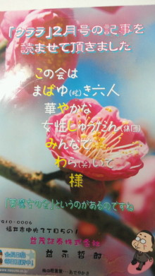 いつもいつも温かく見守って応援して下さる 益茂証券株式会社の益永会長様 より ひらがな和歌のお葉書を頂戴しました。 ウララをご覧下さったんですね。 ありがとうございます。 いつもその時の季節のお花の写 […]