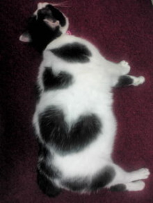 発見しました ミントの体の柄がハートなんです。 カワイイ~ とっても可愛いです。 ちょっとおデブなミントは、 今日も元気ですo(^▽^)o